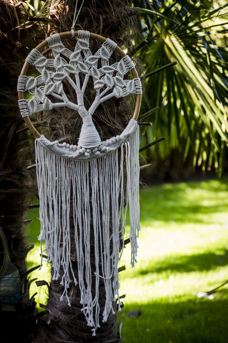 Aan de onderkant van de boom, hangen de touwen waarmee de levensboom is gemaakt.